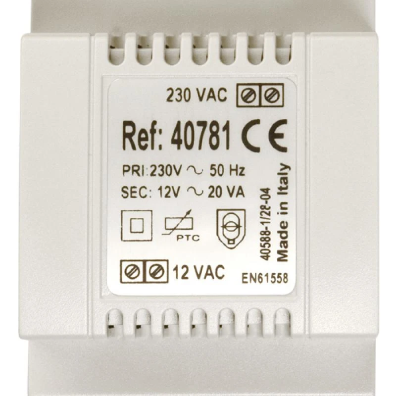 Alimentation 230 Vac /12 Vac – 1,5 A Fixation par rail DIN 3 modules ou par vis